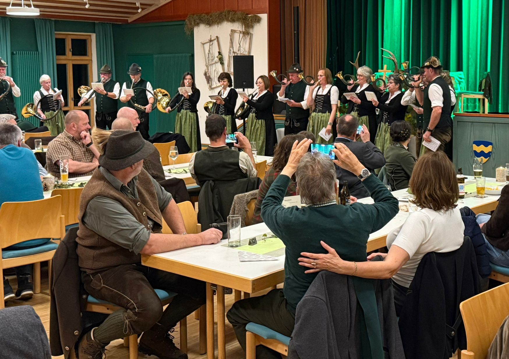 Alle Teilnehmer der Hubertusmesse waren zur Hubertusfeier im Gasthof Hirsch begeistert über die Hubertus-Brotzeit-Platte zu der Kreisjagdverband Mitglieder und Gäste eingeladen hatte.